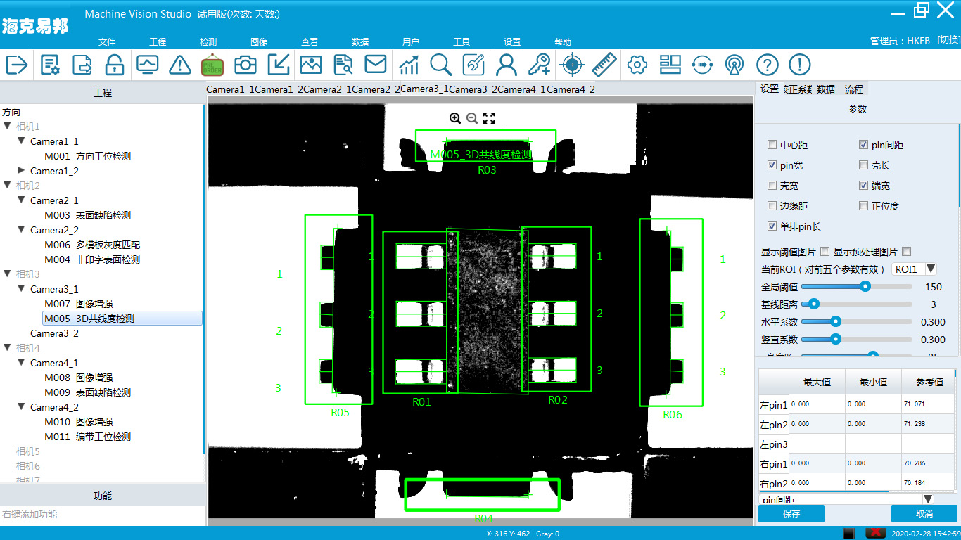3、獨特的3D結(jié)構(gòu)光成像原理,多面成像檢測,3D投影圖像然后對原始管腳和其投影分別檢測引腳長寬、間距、跨距、共面度和共線度。
