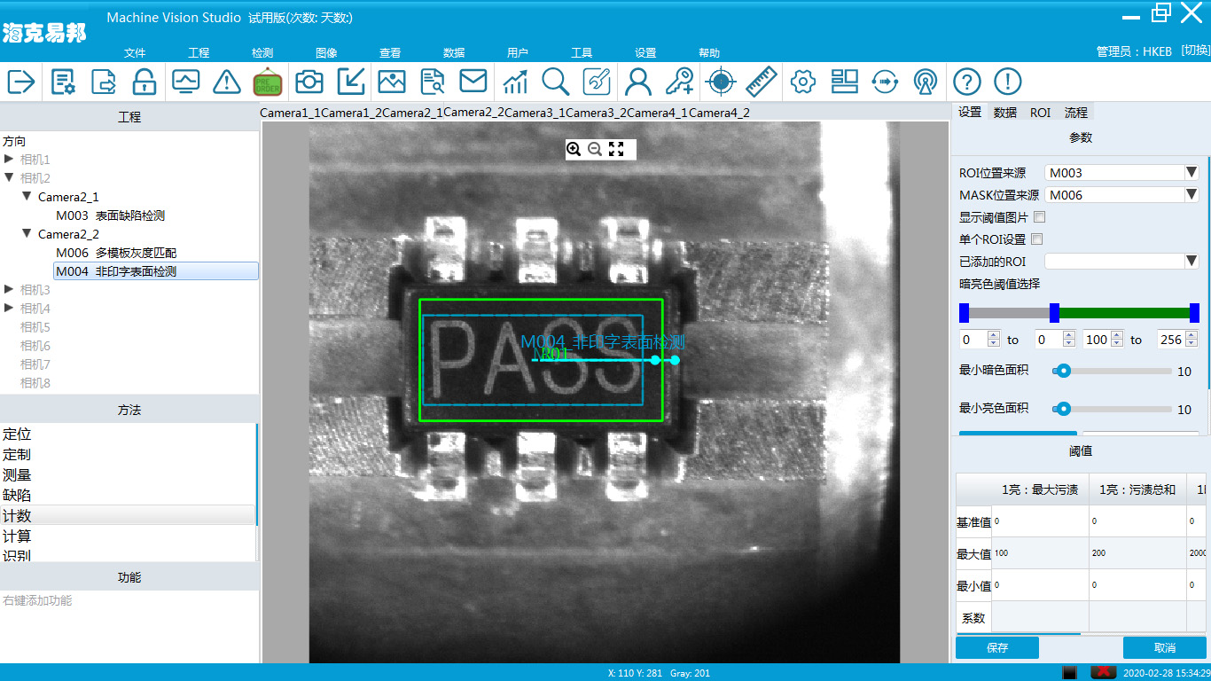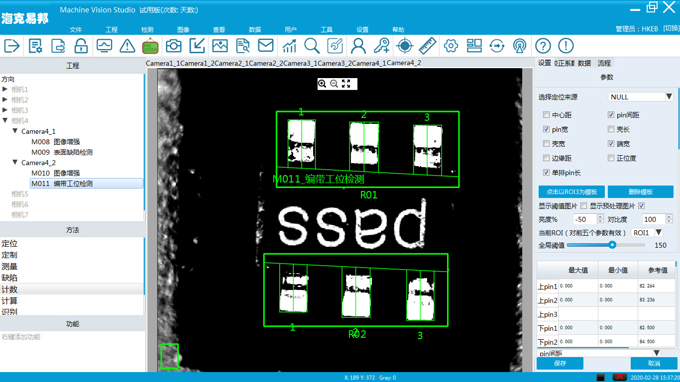 本系統(tǒng)采用四個相機,分為四個工位對半導(dǎo)體芯片進行檢測,分別是: