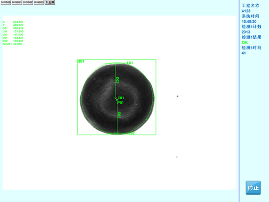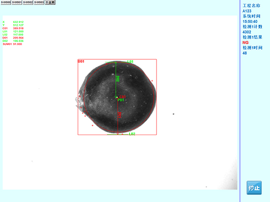 本公司基于機(jī)器視覺圖像處理技術(shù)研發(fā)在藥粒檢測過程中,需進(jìn)行藥粒上白點(diǎn)、藥粒圓不圓、藥粒的粘連、藥粒的色澤正確等功能,檢測完成后輸出OK、NG信號(hào),在排廢位進(jìn)行剔除動(dòng)作。本系統(tǒng)將通過快速獲取在線對藥粒的圖像,通過圖像識(shí)別、分析或計(jì)算獲取藥粒特征信息,來判斷是否符合要求,并輸出控制信號(hào)。系統(tǒng)主要模塊有:觸發(fā)定位模塊,圖像處理模塊、控制模塊。根據(jù)用戶需求,樣品移動(dòng)到檢測位時(shí)觸發(fā)相機(jī)、視覺系統(tǒng)輸出檢測信號(hào),從而完成檢測功能。