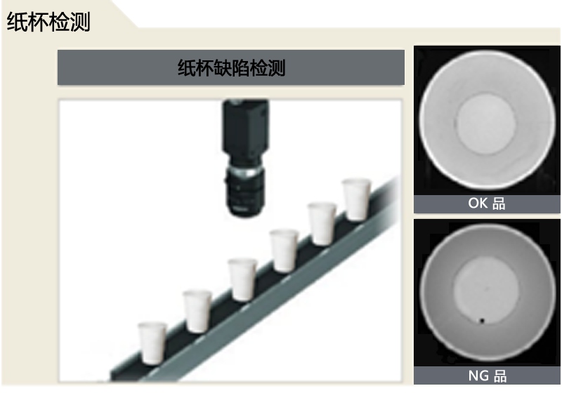 功能:紙杯口部、紙杯底部缺陷檢測(cè)、污漬檢測(cè),檢測(cè)結(jié)果IO信號(hào)輸出。